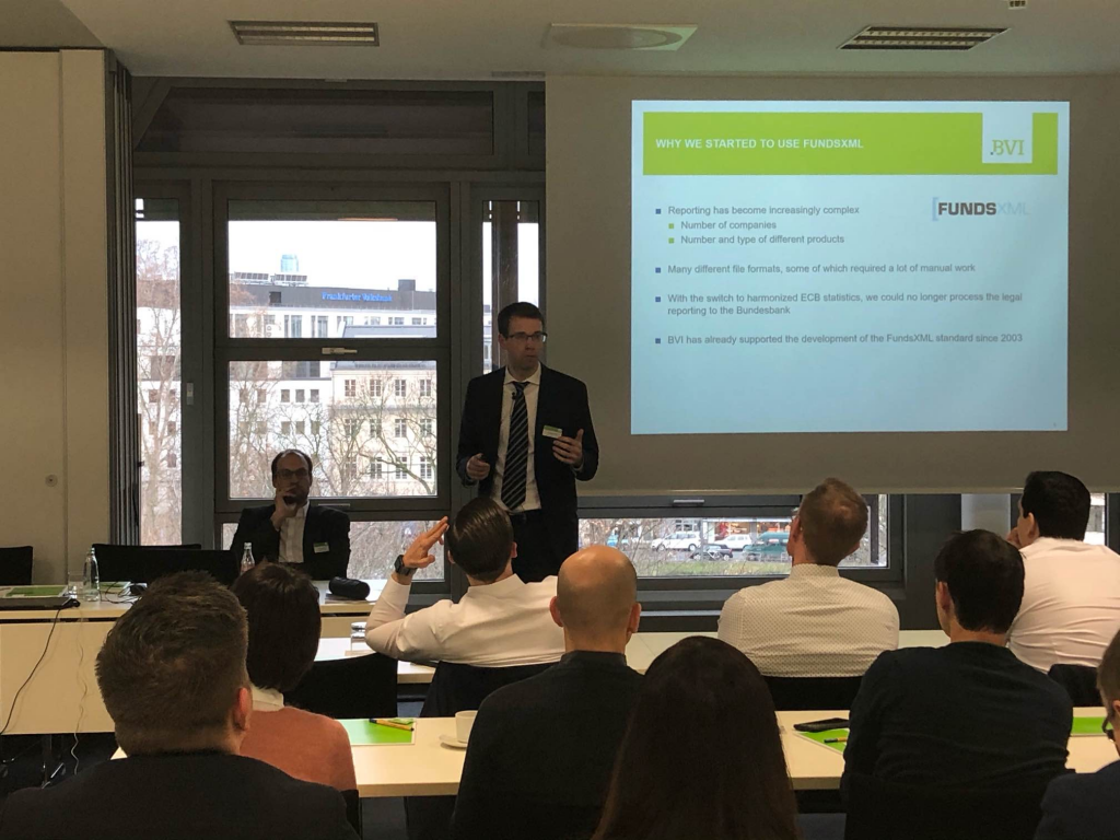 In the presence of numerous guests, the structure of the FundsXML Organization, as well as fundamental features of the format itself, were discussed. It was stressed that in an ever-changing environment, asset managers more than ever require efficient structures to process information and data. This is where the idea of FundsXML as a Europe-wide standardized data format for exchanging fund data comes in. The FundsXML Format facilitates the structured information exchange between investment companies, data vendors, authorities, insurance companies and many more.